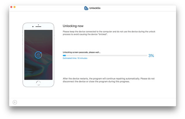 请确保您的设备在整个密码删除过程中保持与计算机的连接,这可能需要几分钟时间。