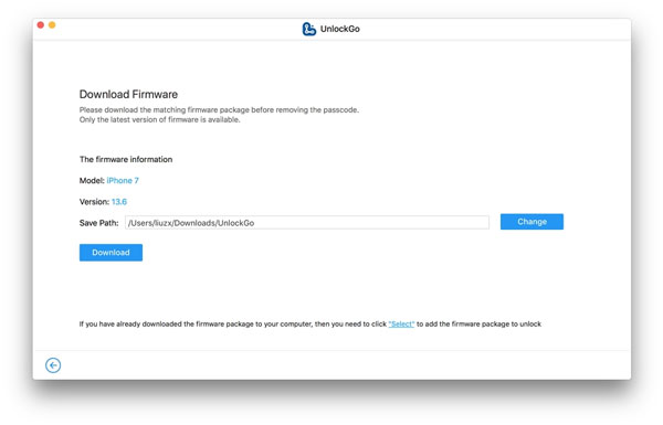 接下来,需要通过选择保存路径并选择“下载”来下载最新的固件包。如果您已经下载了固件包,只需单击“选择”即可将固件导入程序。