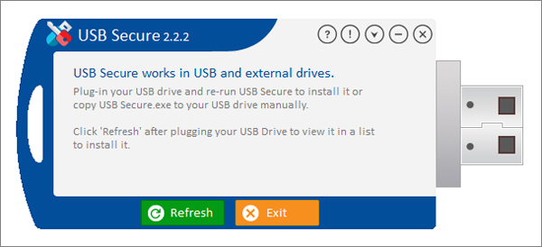 1、插入要使用USB Secure进行密码保护的任何便携式存储设备。运行安装程序以在计算机上安装USB Secure。安装后,直接运行该应用程序。