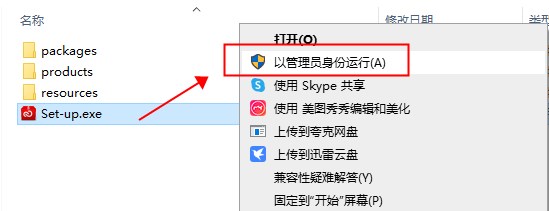 2、先断网,找到并选中Set-up,鼠标右键点击“以管理员身份运行”