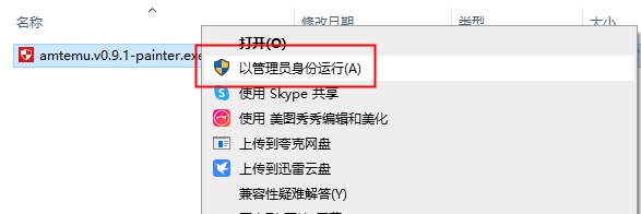 5、打开【补丁文件】文件夹,找到【amtemu.v0.9.1-painter.exe】鼠标右键点击以“管理员身份运行”
