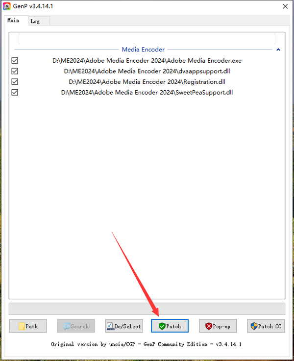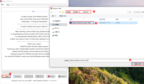 5、激活第一步:点击【Path】,弹出对话框,找到软件安装位置(步骤3更改的位置),点击【Adobe Media Encoder 2024】选择文件夹打开;