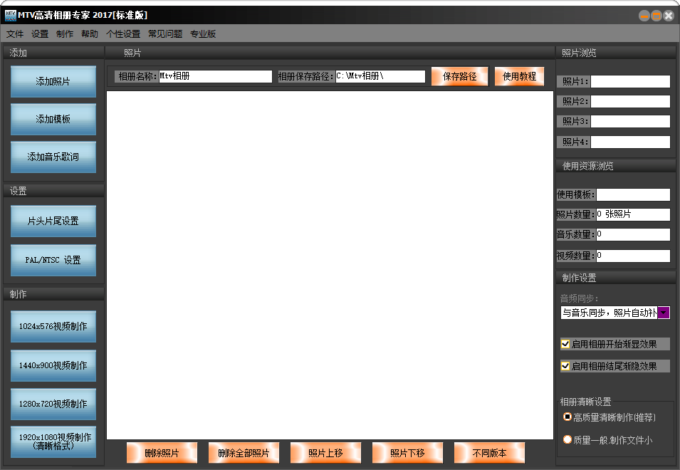 点击【添加照片】,添加需要制作的照片(JPG、BMP,推荐JPG文件)。在照片区,会看到已添加的照片(一个图容纳4张照片,可以添加多个图)。