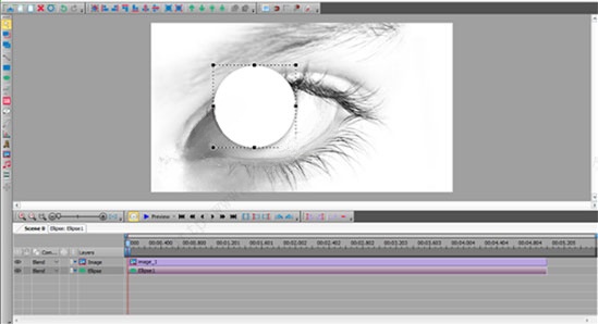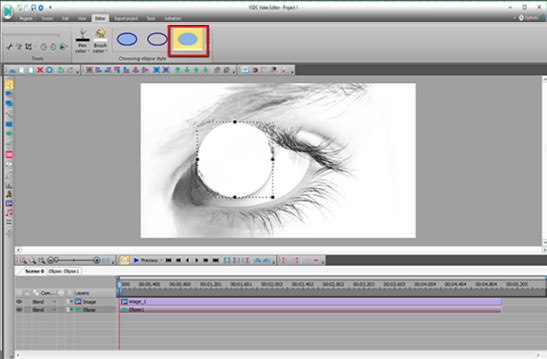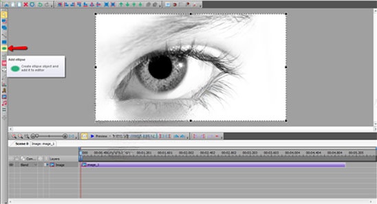 ③在那之后,添加一个形状。在本例中,我们使用椭圆。你可以找到不同的形状在左边工具栏。然后把它所需的区域。