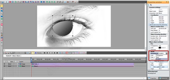 ⑧去的主要场景,凸显了椭圆并应用渐变工具。去对象设置在“填充背景”选择“梯度”。