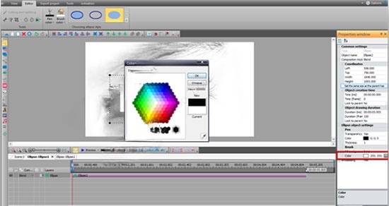 ⑥选择一个黑色和调整它的位置覆盖目标区域。改变椭圆的颜色,去属性窗口中,点击对象的颜色选项设置。