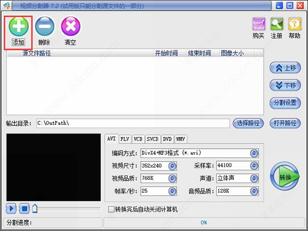 2、支持几乎所有的视频格式分割转换为FLV、AVI、VCD、SVCD、DVD、WMV等格式