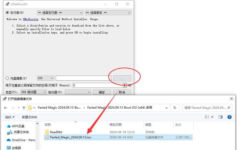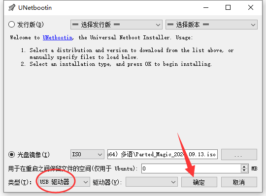 1、先运行unetbootin,加载Parted_Magic.iso(unetbootin是一款能够将Linux操作系统装进U盘或移动硬盘的U盘启动盘制作工具)