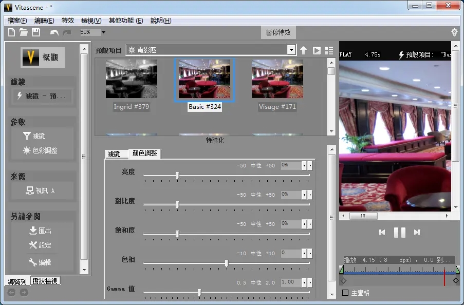proDAD VitaScene 4是一套专业的视频特效解决方案,拥有完整的独立界面,简单明了,主要是为用户提供了视频转场插件和视频特效插件,涵盖了闪烁、调色、遮罩、视效、边框、光线、闪光、扫光、电影、散焦+散景等超过600个滤镜和转场效果,能快速而简单的为用户您的影片增添系列的特效,同时也支持用户自己来调节视频的色相、亮度、饱和度、对比度等视频参数,适用于在最短时间、追求最高品质的专业人士,同时也适用于风景、记录片、产品介绍、婚礼视频等方面的制作。