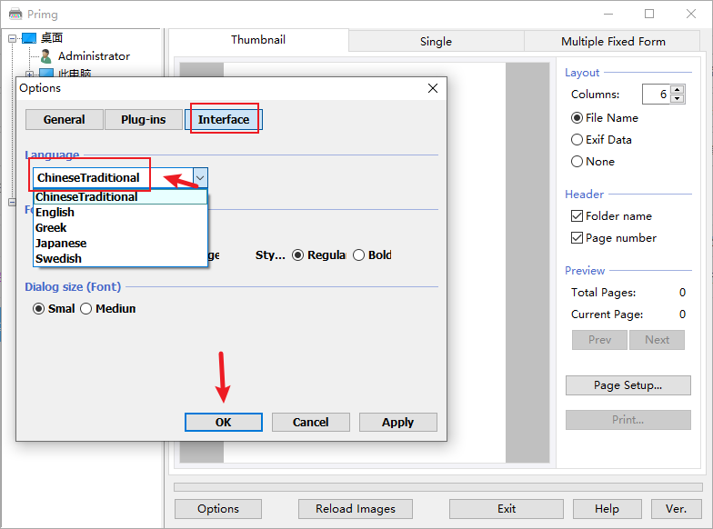 2、在Interface中的Language语言选择Chinese Tradition,最后点击ok即可。