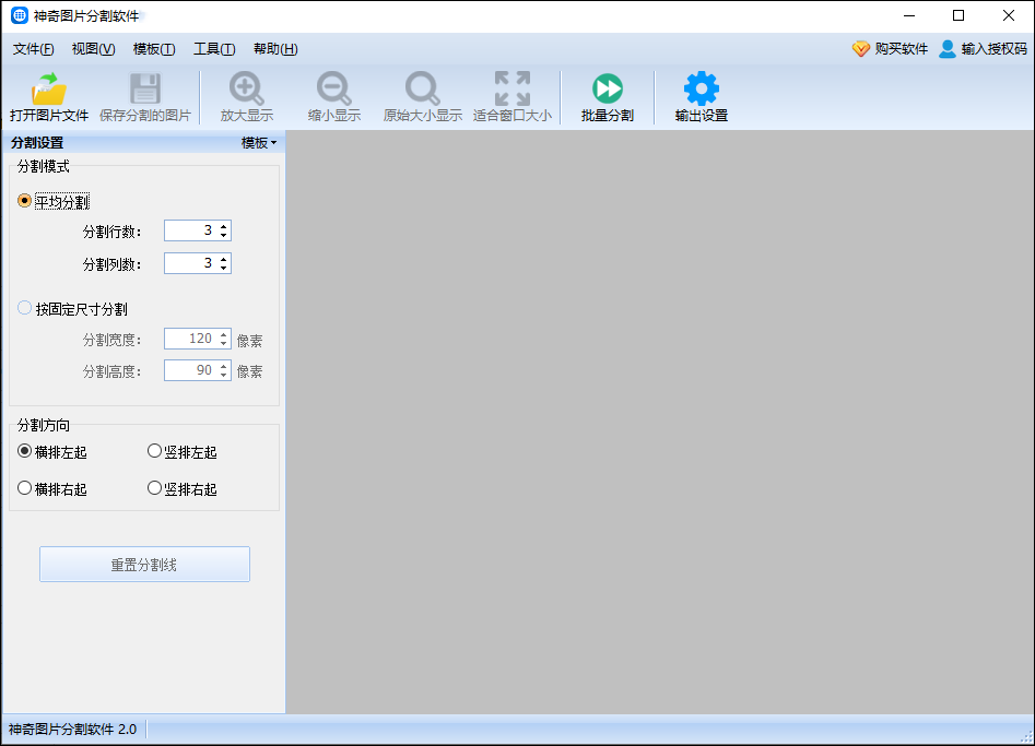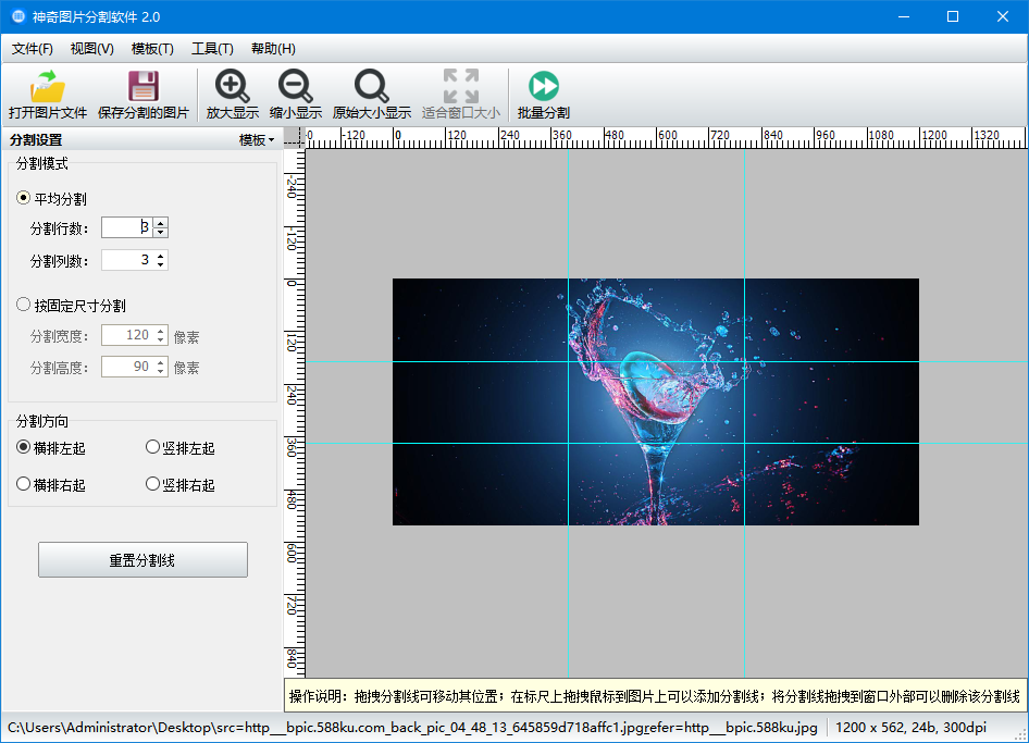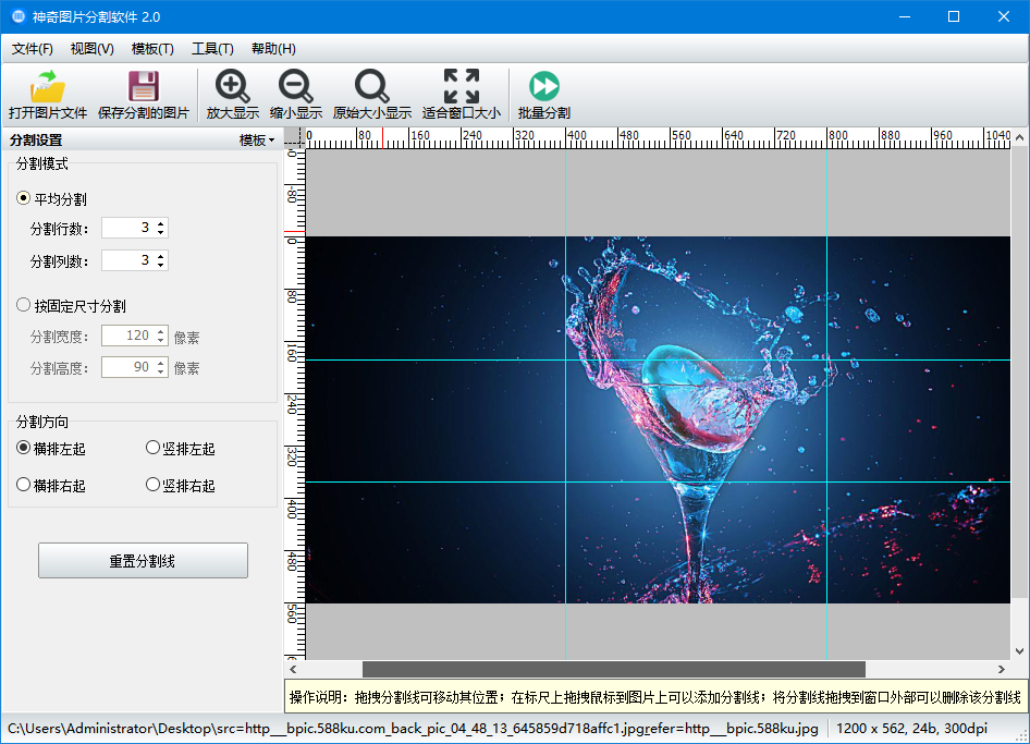 1、支持按行列数平均分割或按指定的尺寸分割两种分割方式;