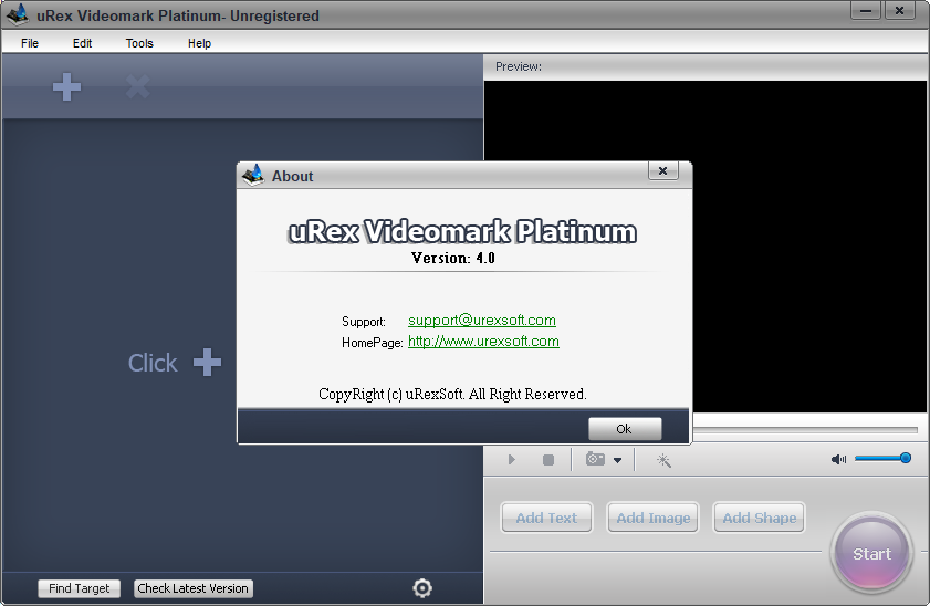 uRex Videomark Platinum特别版支持滚动的文字和丰富的文本设置,如文本不透明度,旋转文本,字体选项,版权符号C,R和TM也可以加入到视频。白金版UREX VideoMark提供超过200图像水印的样品和支持动画图像水印。