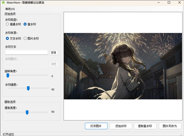 3、可以添加普通水印和盲水印,添加盲水印的原图长和宽最好是2的N次方。
