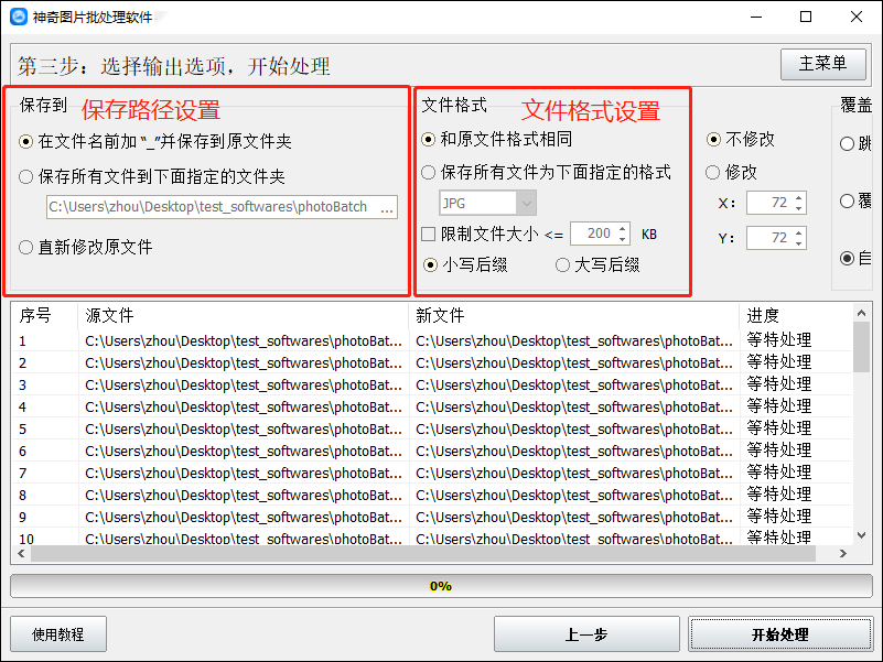 全部设置完毕后,点击“开始处理”按钮,即可完成!