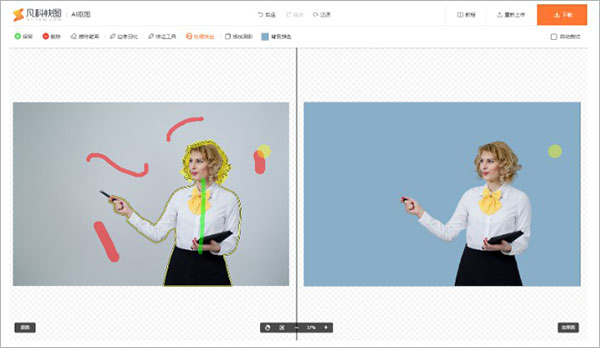 4、视图分为两个部分,左边是我们上传的原图,右边是终的效果图,两个视图操作是同步的。