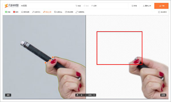 8、如果物体之间边缘明显,并且与背景相差较大,可以用修边工具描出物体之间的边缘,辅助AI区分保留和删除的内容;