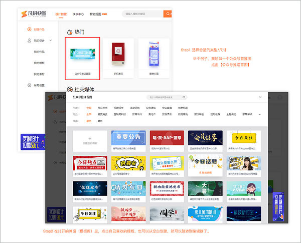 手机海报、公众号推送图、网站banner…内置数10种营销图片尺寸,更有专业设计师
