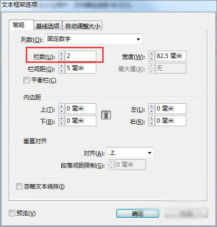 4、右键选择“文本框架选项”在打开的窗口中选择更改栏数、栏间距、内边距等。(效果见图片)