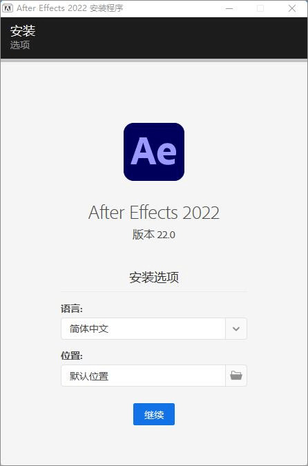 2、双击“Set-up.exe”,支持用户可选择简体中文语言,自定义安装目录安装after effects2022,不需断网,无需安装Adobe Creative Cloud;