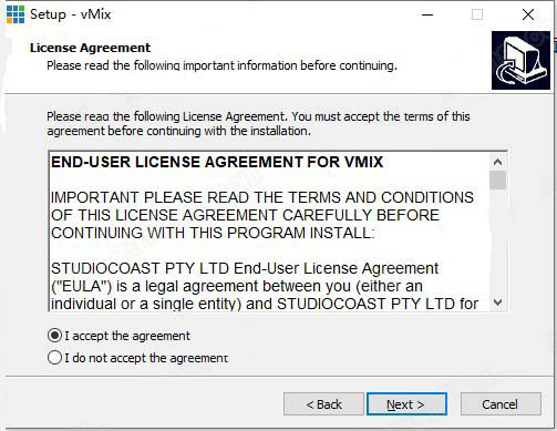 2、选择第一项“I accept the agreement”(我接受许可协议的条款),再点击“next”进入下一步