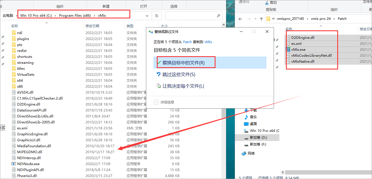 5、将“Patch”文件夹中的文件复制到软件安装目录中(C:\Program Files (x86)\vMix)