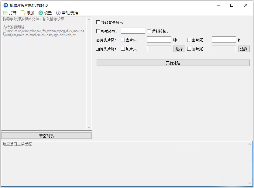 视频片头片尾处理器是专为自媒体用户打造的一款视频处理软件,绿色小巧,简单易用,无任何繁琐的功能,只要导入视频,然后选择相对应的功能即可轻松进行使用,同时支持mp4、m4v、wmv、mkv、avi、flv、webm、mpeg等各类常见的视频文件格式。