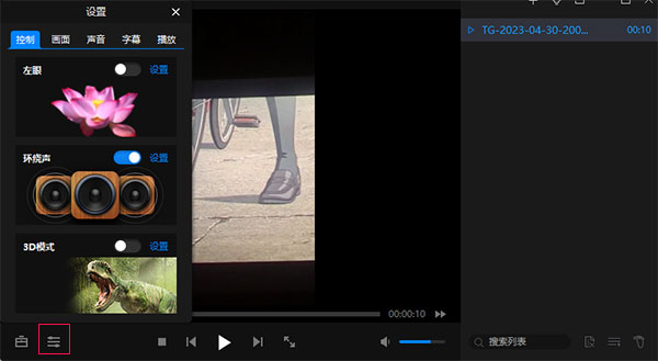 3、你可以点击左侧的“设置”图标对视频画面进行播放、画面、声音、字幕等调节,让观看体验感更佳舒适。