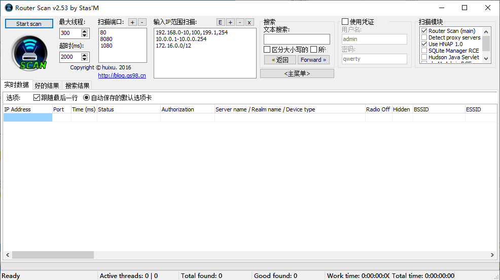 RouterScan是我用过的路由器扫描软件中最容易使用,效果最好的,功能最全面的一个工具,成功率可以达到90%,非常适合新手和脚本小子使用。最为一款路由器安全测试工具,其最核心的功能当然还是在路由器扫描。