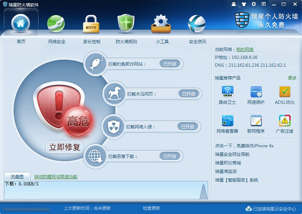 1、智能拦截钓鱼网站:瑞星个人防火墙拥有丰富智能判断规则和方法,更加有效地解决钓鱼网站对用户的危害,保护用户隐私信息、账号密码安全。