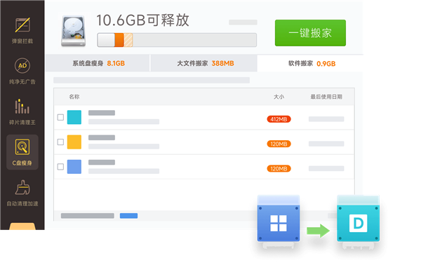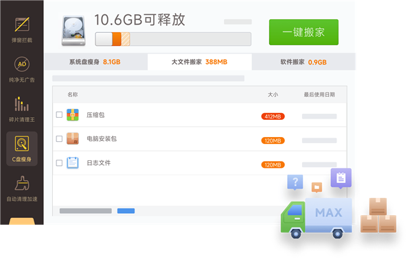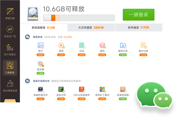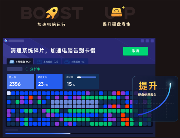 清理系统碎片,告别电脑卡慢 定期清理,延长硬盘使用寿命。
