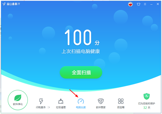 1、打开金山毒霸主界面,点击左侧软件净化,即可一键拦截弹窗广告及推广软件