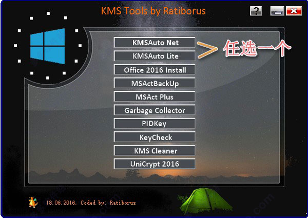 1、运行KMSTools.exe,在 KMSAuto Net 和 KMSAuto LIte 中任意选择一个运行。