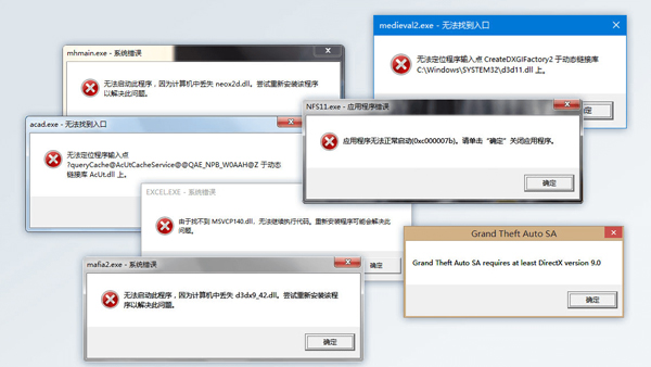 用户在用电脑安装或运行一些游戏、软件时经常会弹出种种错误提示,其中大部分错误提示是说用户缺少各种dll文件,程序无法正常安装或运行。对于一些电脑小白来说,这样提示几乎是在增加问题,而不是在解决问题。其实这些提示说明了这些游戏、软件都是用c/c++语言,或类c语言代码进行编写开发的,而dll文件是指动态链接库,因为程序在开发过程中是不可能整个开发的,只是将核心模块进行开发运行,而其它组件则是通过调用模块代码进行运行的,dll文件就充当了这个角色,进行动态链接其它模块代码运行。