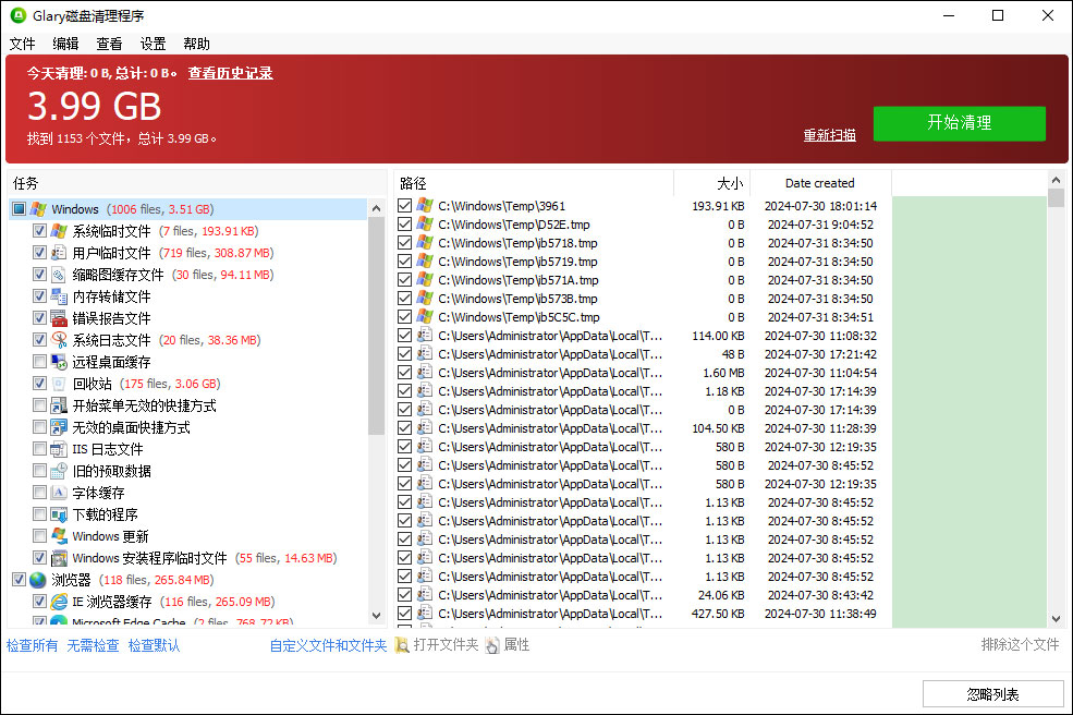 采用专业快速扫描内核, Glary Disk Cleaner 可以非常快速地扫描磁盘上的所有垃圾文件。