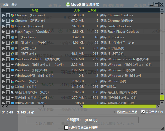 我最近一直在用这个工具,感觉真的很方便,特别是对于那些不想被各种垃圾文件拖累的人来说,Moo0绝对是个神器。如果你需要一款高效又不占内存的清理工具,我觉得它真的值得试试。