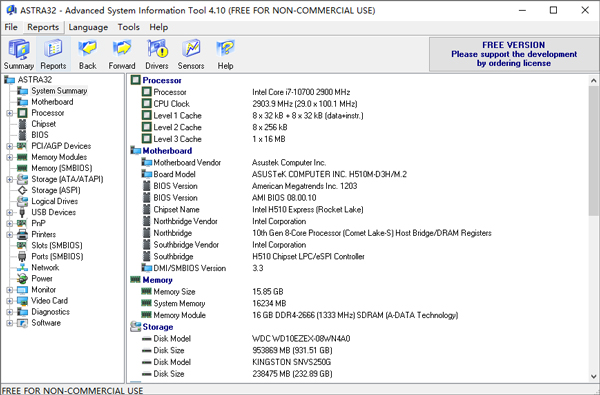 今天小编给大家带来的这款ASTRA32硬件信息检测工具是一款非常好用的检测软件,不少用户可能不太清楚它是干什么的,这款软件主要的功能还是针对电脑中所有的硬件进行检测,而这一类硬件中包含了已知和未知的,能够轻松快速的检测CPU的频率、特征、Cache,主板品牌生产商、主板BIOS、显示卡、硬盘、光驱等,还可以提供厂商的网址,让用户能够更方便的找到驱动!有需要的朋友欢迎免费下载使用。
