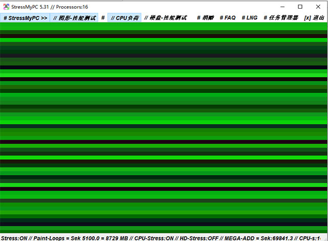 StressMyPC中文版是来自国外的一款绿色小巧,功能强大的电脑硬件压力测试工具,支持针对主机显卡、CPU、硬盘等电脑硬件进行稳定性及压力测试,支持调节使用率功能,能使硬件使用率达到100%,让您轻松看出自己电脑的硬件性能,本站为用户提供StressMyPC中文版下载,绿色、免费,测试显卡时有几秒钟闪频,可以提升硬件的使用效率,有需求的用户请下载收藏!