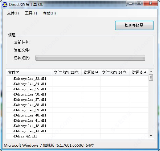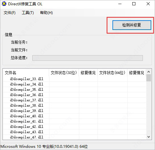 1、下载并解压本站提供的directx repair在线修复版,单击【检测并修复】按钮开始检查电脑的当前状态及是否有异常问题存在。