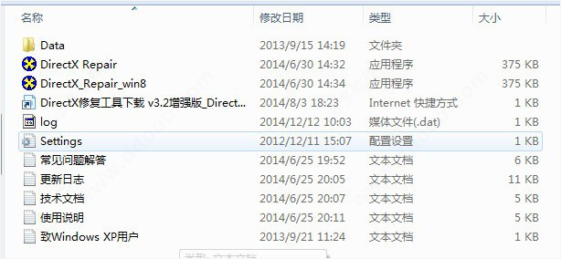 问题四:文件夹里为什么有两个“DirectX Repair”程序,该用哪个?:“DirectX Repair.exe”为通用版程序,可以兼容Windows XP(需先安装.NET 2.0,详情请参阅“致Windows XP用户.txt”文件)、Windows Vista、Windows 7、Windows 8(需要先按系统提示开启.NET 3.5)、Windows 8.1(需要先按系统提示开启.NET 3.5);“DirectX_Repair_win8.exe”为特别版程序,默认只兼容Windows 8和Windows 8.1,可以在这Windows 8和Windows 8.1系统上直接运行。这两个程序的功能完全相同。