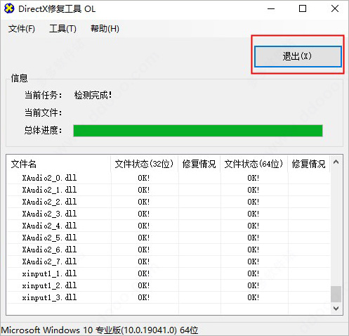 5、稍等片刻程序修复成功我们可以单击如下图中的【退出】按钮退出该界面。