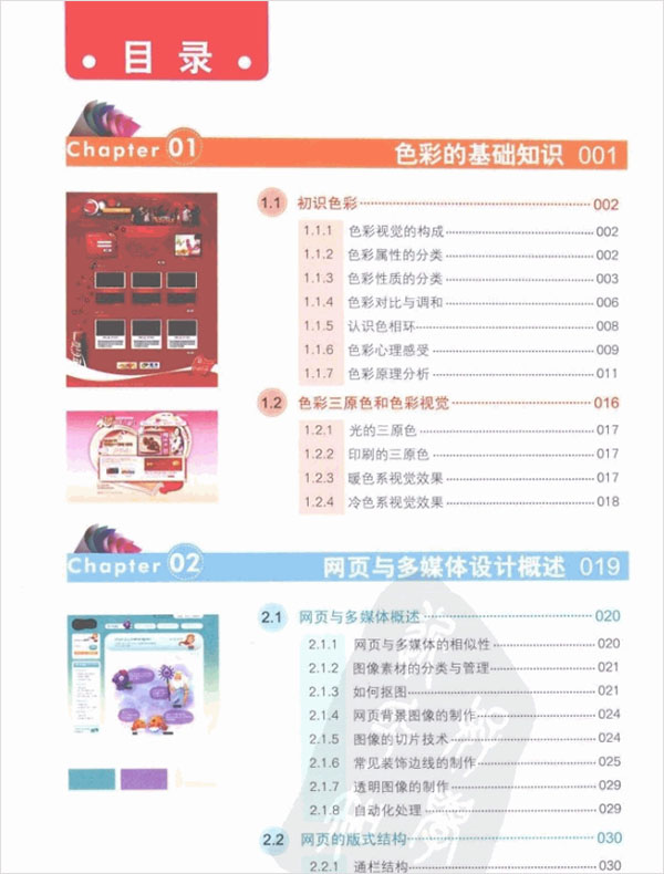 在日常生活中,色彩早已广泛地深入到人们的精神生活和物质生活中,它是一种能够激发情感、刺激感官的重要元素。《网页配色实用手册》从色彩的应用范围和网页设计行业需求出发而编写。全书共分为9章,第1章~第2章主要介绍色彩的基础知识、网页与多媒体的相关知识,帮助读者掌握基本的理论;第3章主要介绍明度、纯度以及色彩感觉的配色,引领读者深入学习;第4章~第8章分别根据网站的属性、网站的地区风格、网站的版式风格以及网站的行业风格进行分类,介绍每类网站的特点,讲解经典配色案例,提供合适的配色方案,增加直观的版式示意图,方便读者根据实际需要进行学习,供读者即学即用;第9章提供了20类不同网站的网页精彩配色案例,让读者边欣赏,边学习,全面掌握配色方案在实践操作中的应用技巧。