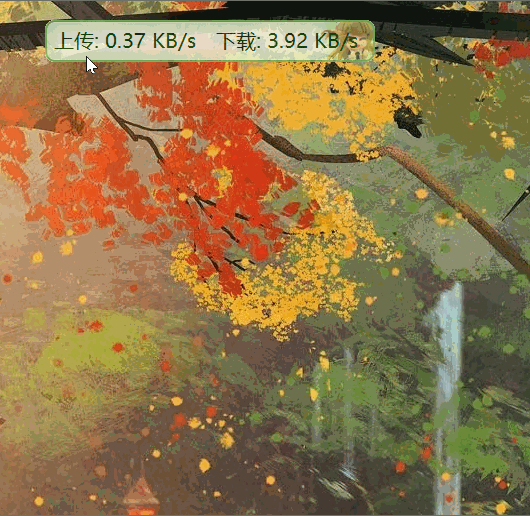 程序启动后在会在屏幕中显示一个显示网速的悬浮窗。在悬浮窗上点击鼠标右键可以弹出右键菜单。