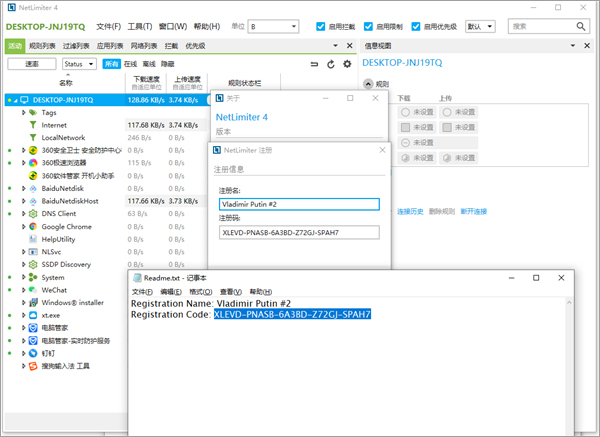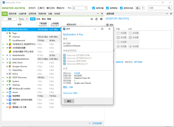 ps:本站为用户提供netlimiter 4中文特别版,该版本采用正版注册码激活,可直获取NetLimiter 4 pro专业版权限,内置相对应的中文文件补丁,可以实现软件操作界面的汉化,更加适合国人的使用习惯,后文附有详细的图文教程,亲测可用,有需求的用户请下载体验。