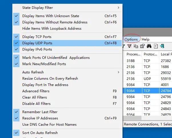 我最近也在用这个工具,发现它的界面清晰易懂,操作起来也很方便。运行后会以列表形式展示系统中的活动连接,包括进程名称、协议类型、本地端口、远程地址等详细信息。如果你对默认显示的信息不满意,还能通过“Options”调整设置,非常贴心。