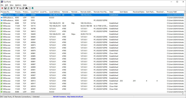 5.CurrPorts可以显示连接的状态,例如“正在监听”,“等待关闭”等。