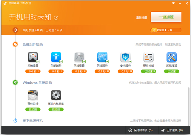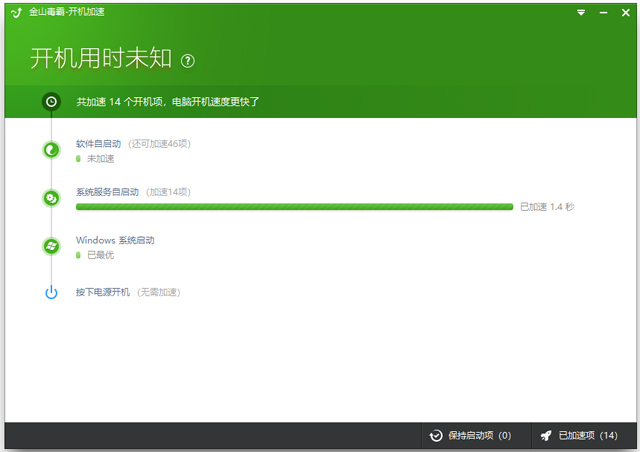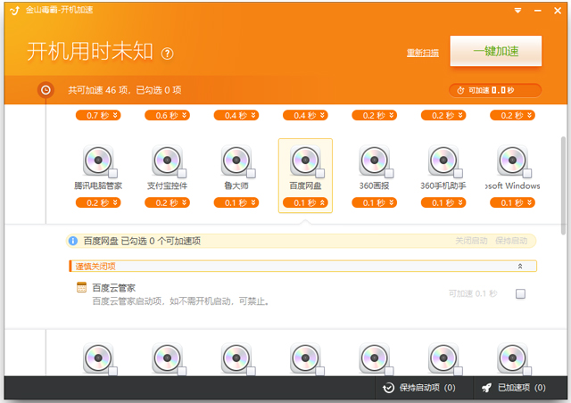 金山毒霸开机加速单文件版使用教程