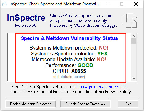 InSpectre官方版是一款来自国外的cpu漏洞检测工具,功能强大又轻巧,不到1M的体积完全不占内存。它能快速查出CPU中的漏洞,还能一键修复。操作特别简单,打开就能自动扫描,还能检查系统是否对Meltdown和Spectre免疫。