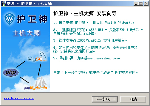 护卫神主机大师是一款集成了多版本PHP套件和主机系统于一体的主机管理系统,该系统永久免费,能够一键安装网站运行环境(IIS+ASP+ASP.net+PHP+MySQL+FTP+伪静态+PhpMyAdmin),拥有独立前台和后台面板,支持Windows Server 2008/2012,并可在线开设主机、SQL Server和MySQL,Web方式管理可以让用户可以更好的管理主机。