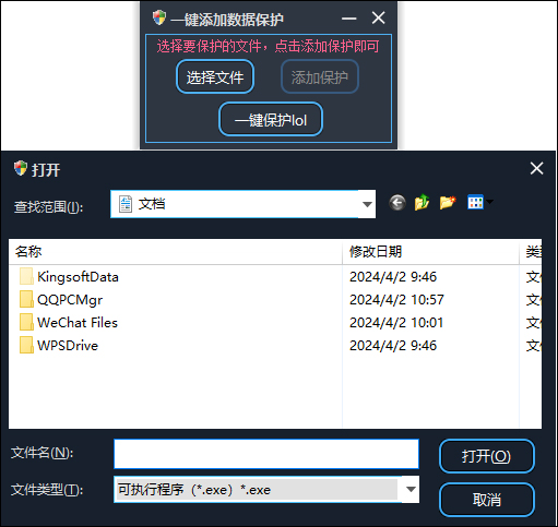 一键添加数据保护软件是一款可以帮助用户添加数据保护的小工具,绿色小巧易携带。例如有时候我们打开软件、辅助、游戏修改器等会出现打不开、自动停止运行、或玩辅助没效果等出现这些问题,大多是都是因为电脑给用户的权限不够用,这时利用该软件直接进行添加文件选择数据保护,那么就可以直接解决那些问题了,是不是非常的便捷实用?欢迎有需要的用户们免费下载体验,而且该软件还支持在网吧电脑使用哦。