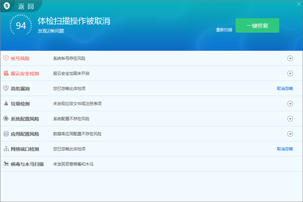 3、体检完成后,点击【一键修复】就可修复您的服务器漏洞了。